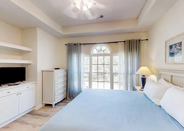The spacious Cypress Bend 432 Apartment Myrtle Beach is situated in Myrtle Beach, a 10-minute drive from the public Alabama Theatre, and offers spa amenities such as a Jacuzzi. With access to a golf course, this apartment caters to the needs of active guests.